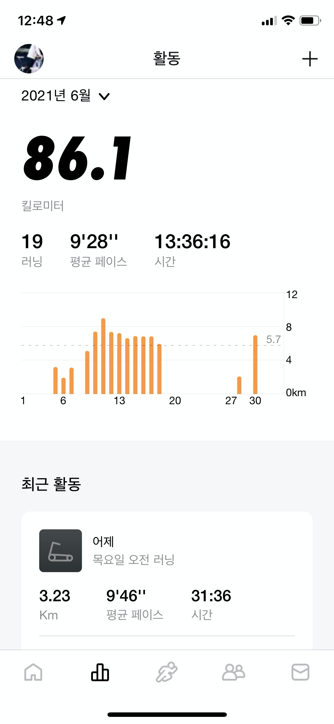 그동안은 재택근무 날이나 주말에만 러닝머신을 달렸는데, 온전히 출근을 하는 일상의 평범한 날에 작은 도전을 해봤다.