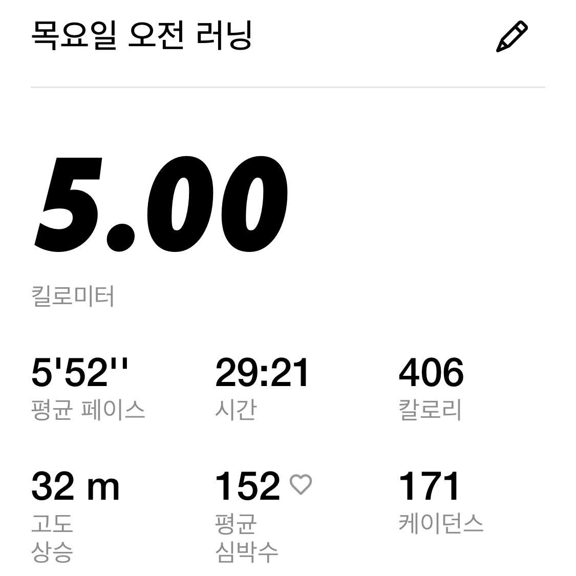 오늘은 출근 시간 때문에 5km 밖에 못 달리겠다.