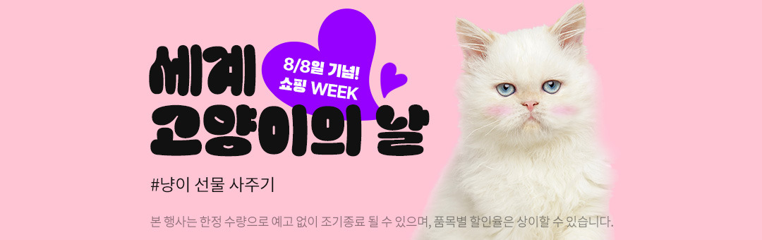 세계 고양이의 날을 기념하여, 쿠팡에서 준비한 이번 쇼핑 Week는 반려묘에게 특별한 선물을 준비할 수 있는 절호의 기회입니다. 고양이가 좋아할 만한 간식이나 장난감, 그리고 건강을 챙길 수 있는 생활 용품들까지 폭넓게 준비되어 있어, 이번 기회를 통해 반려묘에게 감사의 마음을 표현해 보는 것은 어떨까요? 다만, 이 행사는 한정 수량으로 진행되며, 예고 없이 조기 종료될 수 있으니, 관심 있는 상품들을 미리 살펴보고 구매 계획을 세우는 것이 좋습니다. 이번 특별한 날을 기념하며, 고양이와 함께하는 행복한 순간을 만들어 보세요!