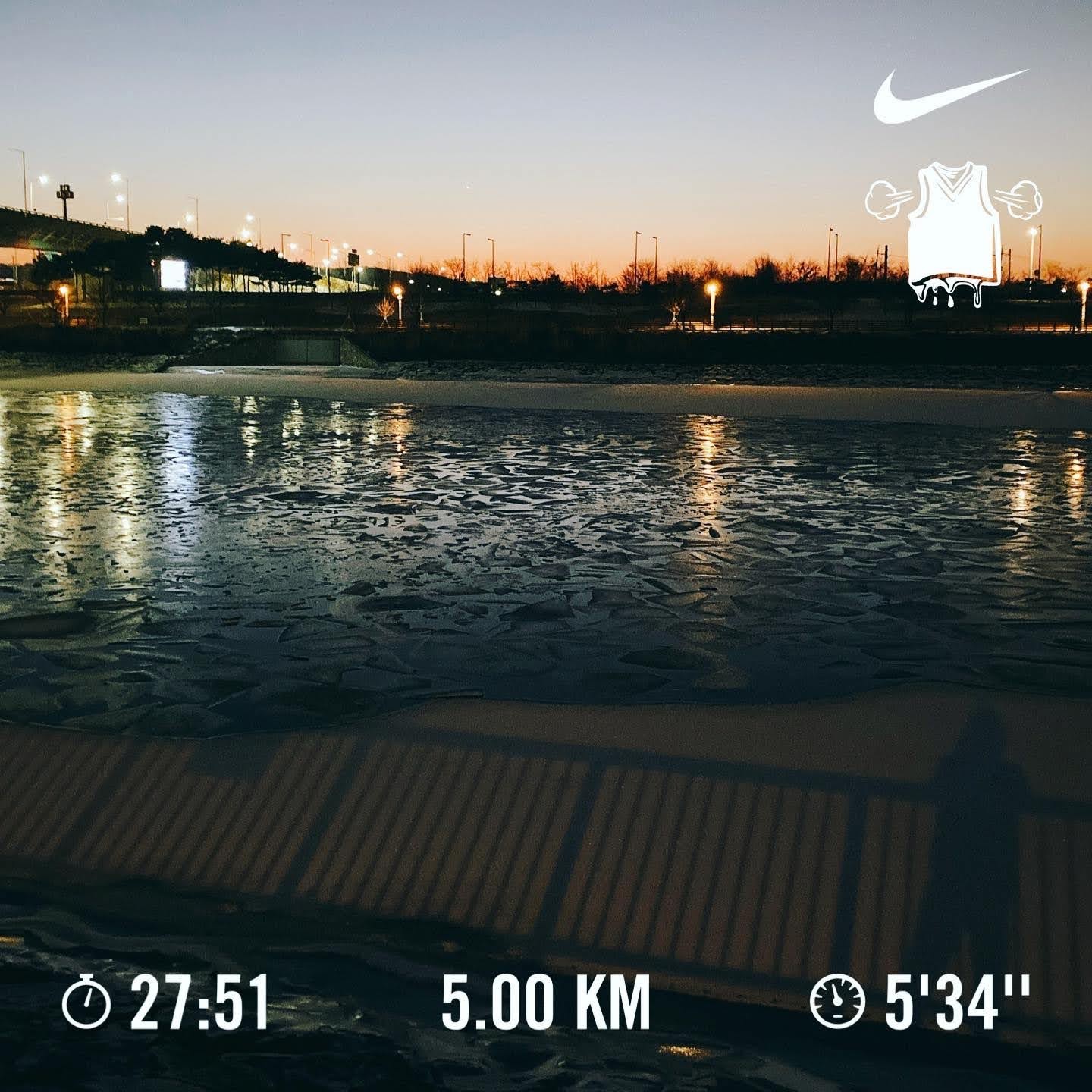 처음 눈 위를 달렸다. 눈이 오더라도 절대 달리기는 패스하지 않기로 했다.