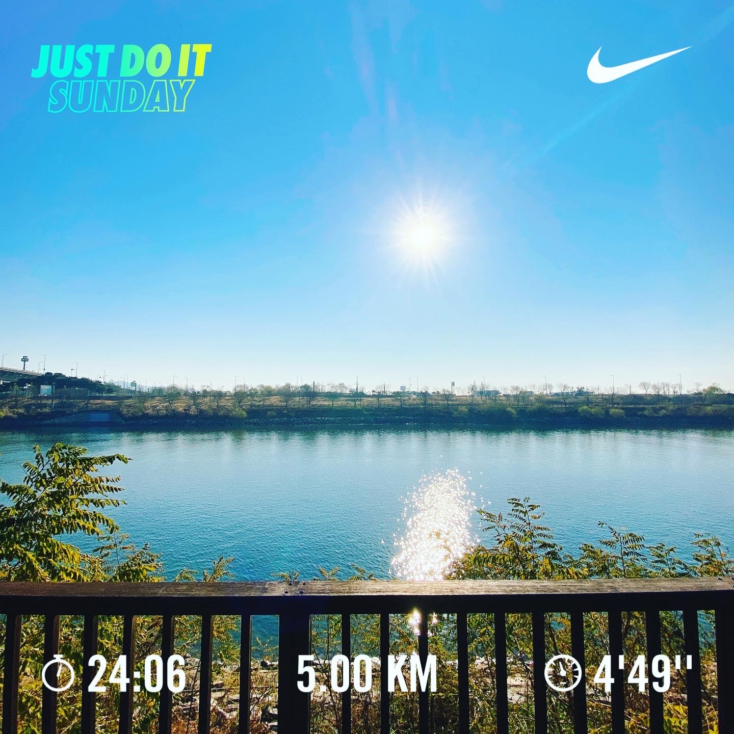 평소 해가 거의 없는 깜깜한 새벽과 다르게 이미 해는 다 떴고 심지어 날씨도 포근해 봄이 왔나 싶은 착각이 들 정도였다. 무엇보다 아라뱃길에 도착했을때 해가 하늘 높게가 아닌 딱 정면에서 10도정도만 목을 꺾으면 눈이 마주칠 위치에서 환하게 비추고 있는 폼이 일품이었다. 어디 벚꽃이 핀 건 아닌가 하는 생각을 잠깐 했다. 기분도 덩달아 좋아졌다.