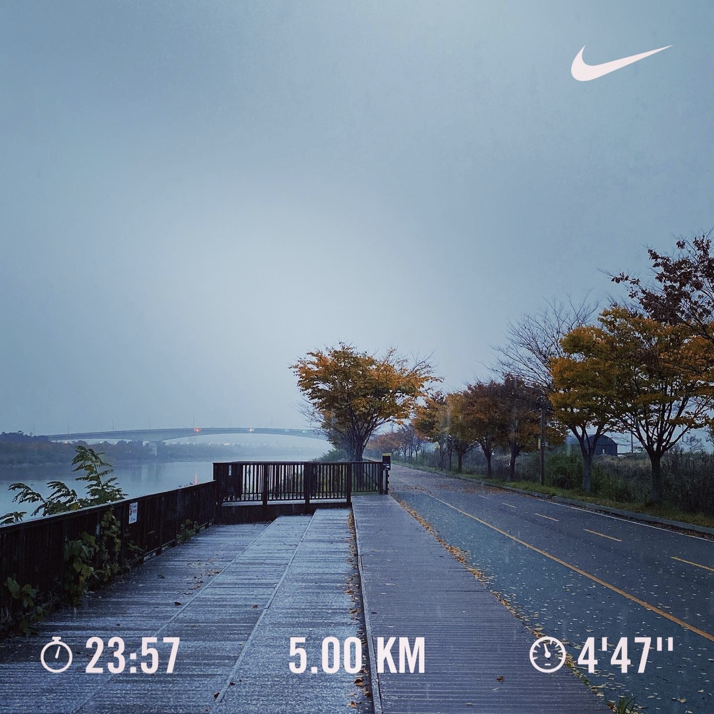 그렇게 첫 눈 내리는 날 모닝 러닝을 달렸다.