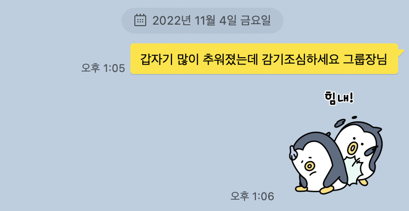 예전 그룹장님께 오랜만에 뜬금포 카톡을 보냈다.