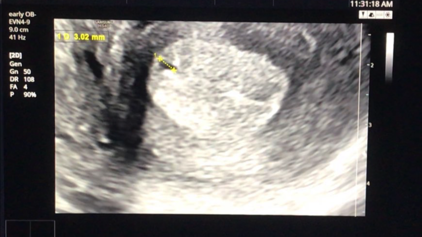 "아직 점으로 조차 잘 보이지 않는 우리 아가지만 엄마 뱃속에서 예쁜 집 짓고 10달 동안 잘 지내고 있길 바라~ 이렇게 와줘서 정말 고마워"