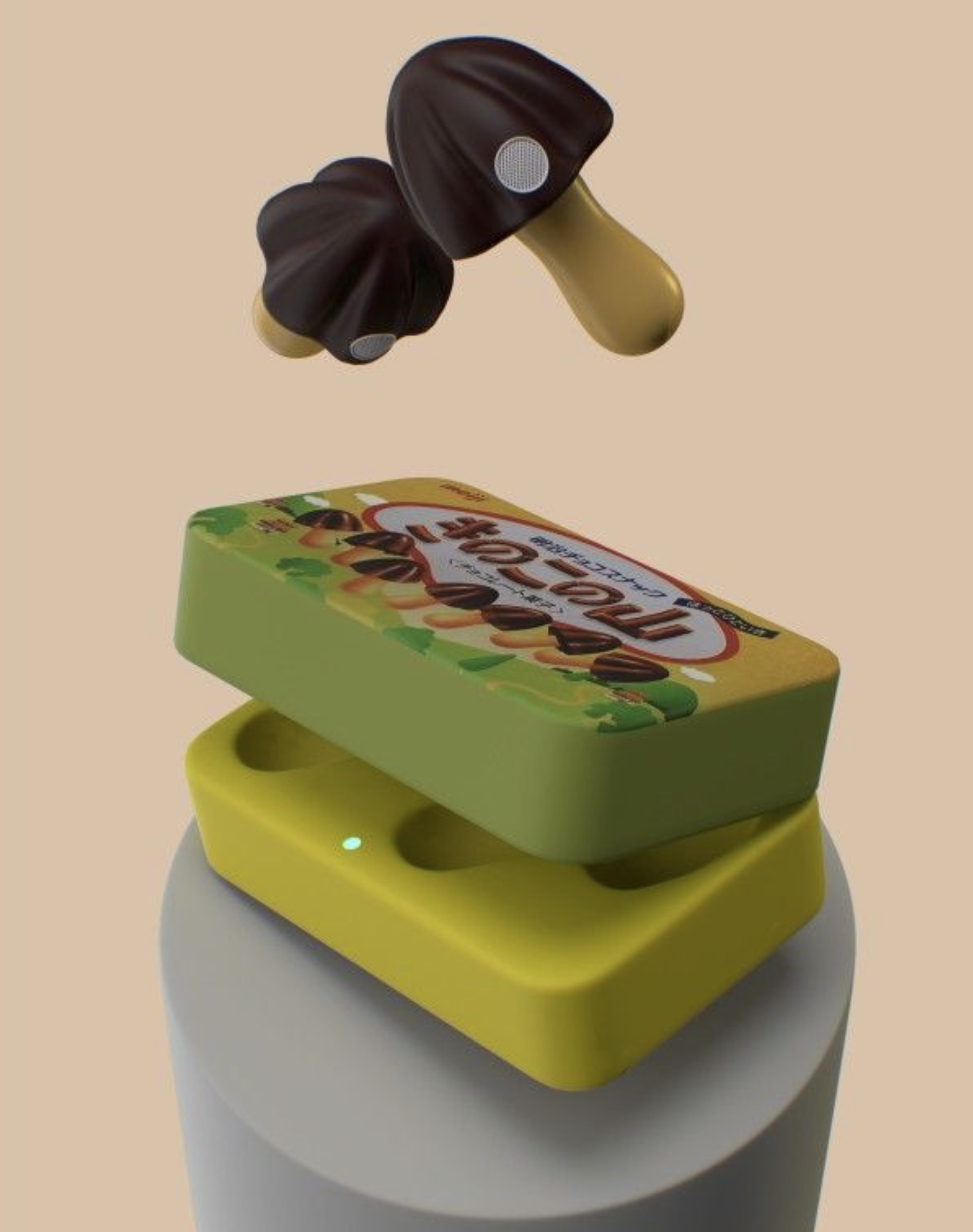 일본의 인기 과자 ‘키노코노야마(버섯의 산)’를 모티브로 한 무선이어폰이 출시와 동시에 매진되었습니다. 이 이어폰은 메이지 식품회사가 출시한 것으로, 3500대 한정 판매되어 출시 10분 만에 모두 팔렸습니다. 가격은 2만9800엔(약 26만원)으로, 이어폰을 귀에 꽂으면 마치 과자가 귀에 달린 듯한 모습을 연출합니다.