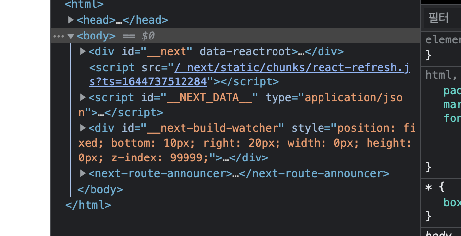 id=”__next” 라는 부분이 있는데 next.js는 이 div 안에서 동작한다.