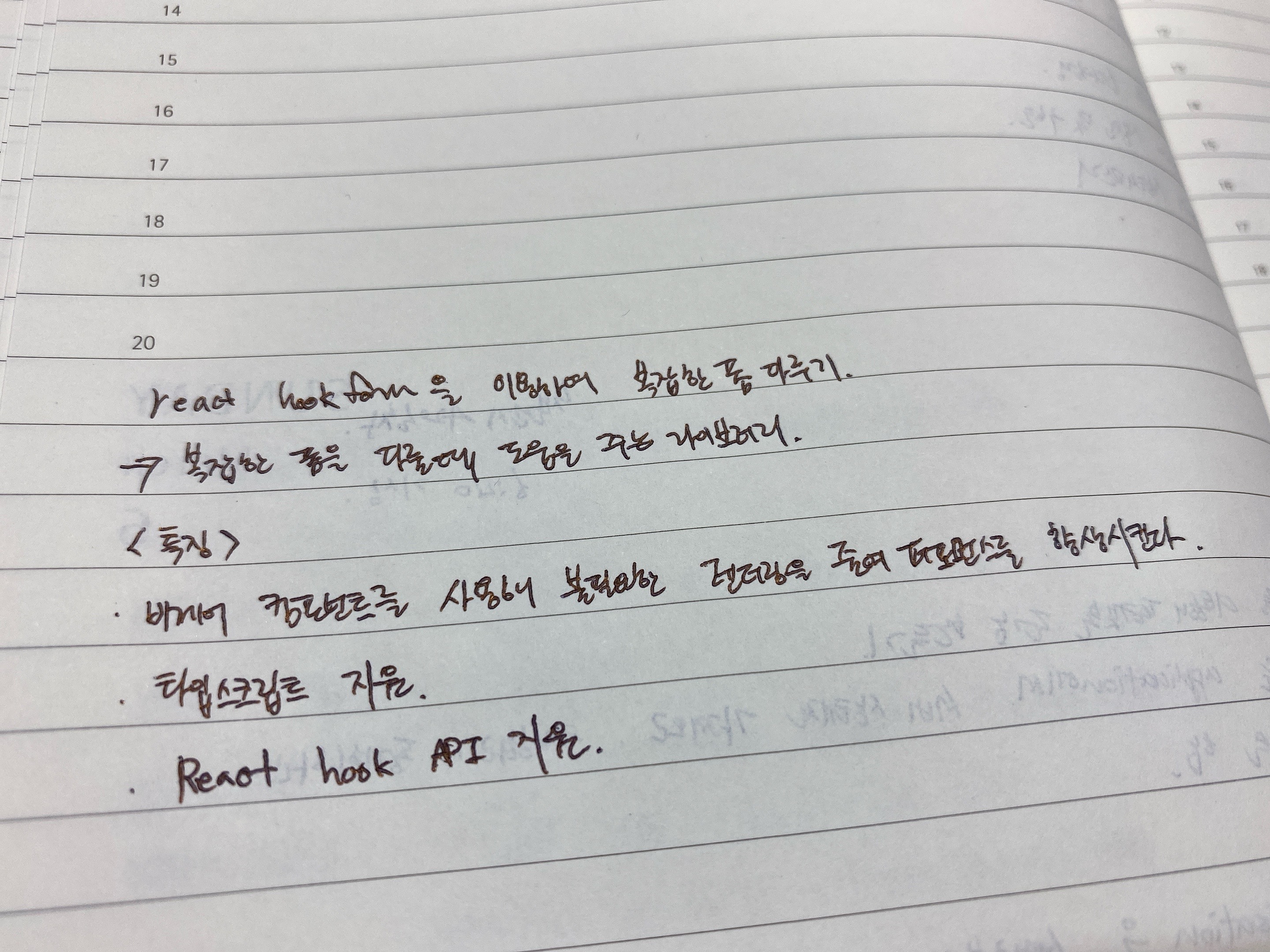 일반적으로 리액트에서는 **제어 컴포넌트 (Controlled Component)**로 입력을 제어하는 것을 권하지만 react-hook-form 은 비제어 컴포넌트(Uncontrolled Component)가 불필요한 렌더링을 하지 않기 때문에 성능상 우위를 점한다는 점에서 이 방법을 사용합니다.
