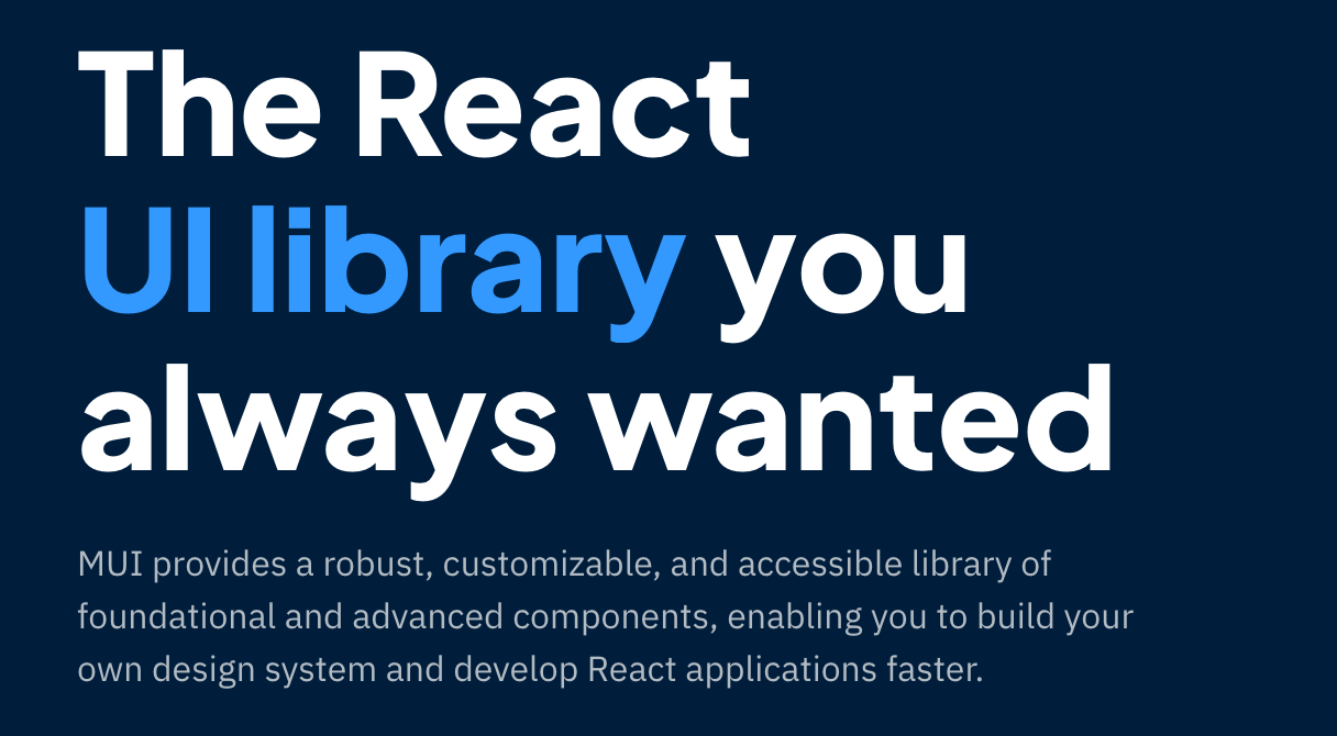 MUI provides a simple, customizable, and accessible library of React components. Follow your own design system, or start with Material Design. You will develop React applications faster.