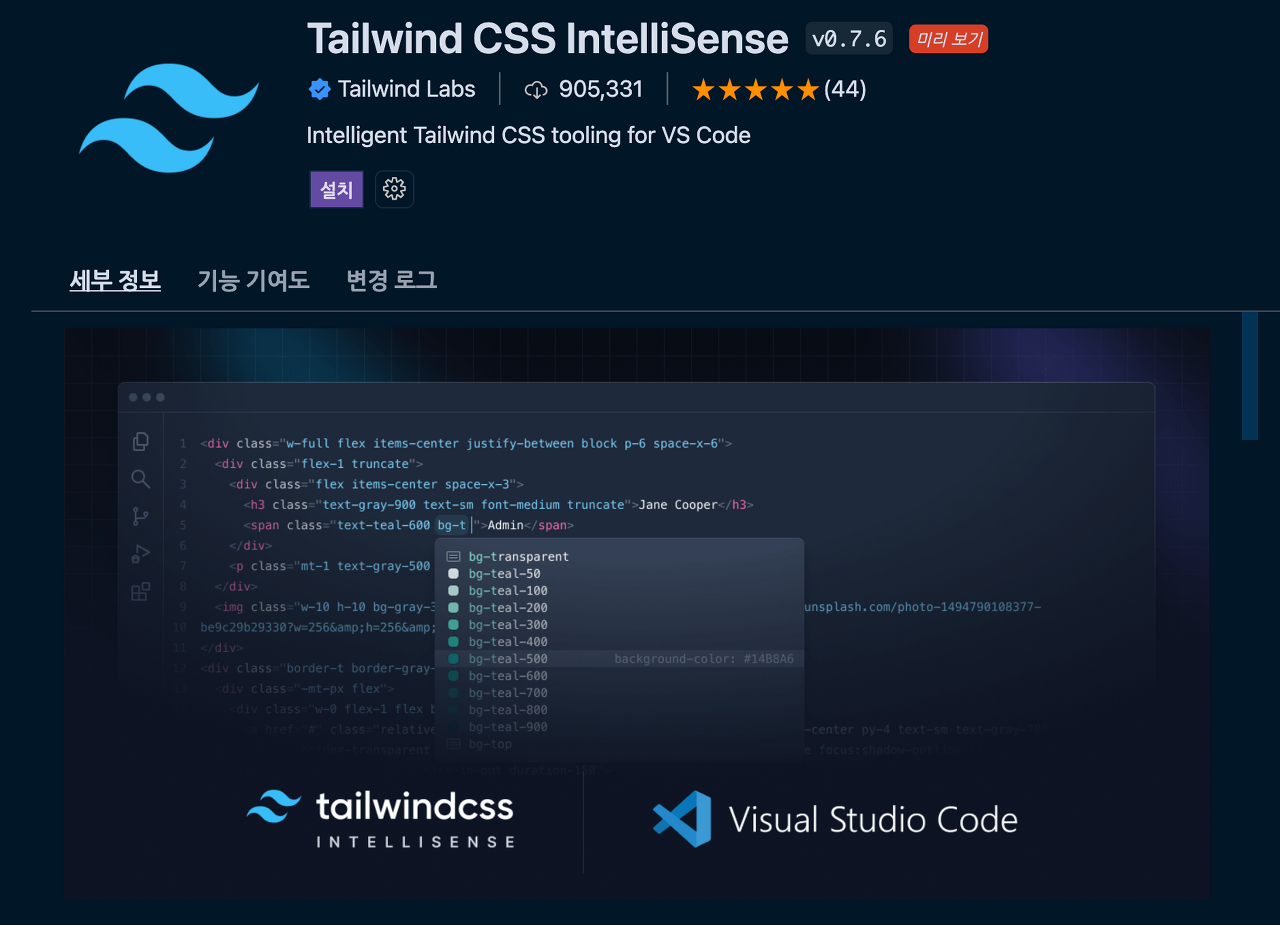 Tailwind CSS IntelliaSense는 VSCode에서 Tailwind 속성값들의 코드힌트를 제공