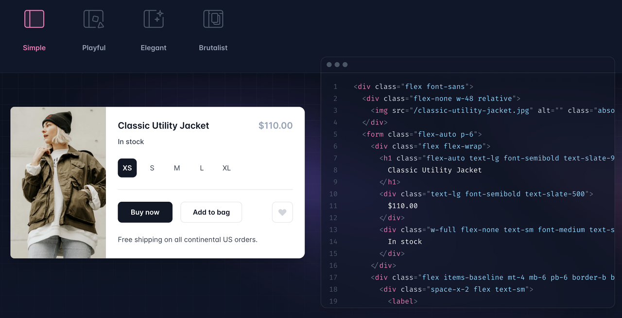 Because Tailwind is so low-level, it never encourages you to design the same site twice. Even with the same color palette and sizing scale, it's easy to build the same component with a completely different look in the next project.