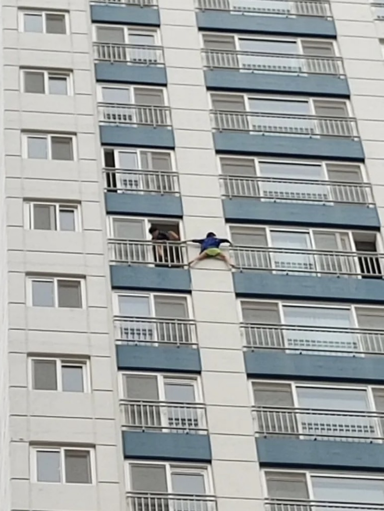 아파트 18층에서 애들이 이러고 있다는 사진을 봤다