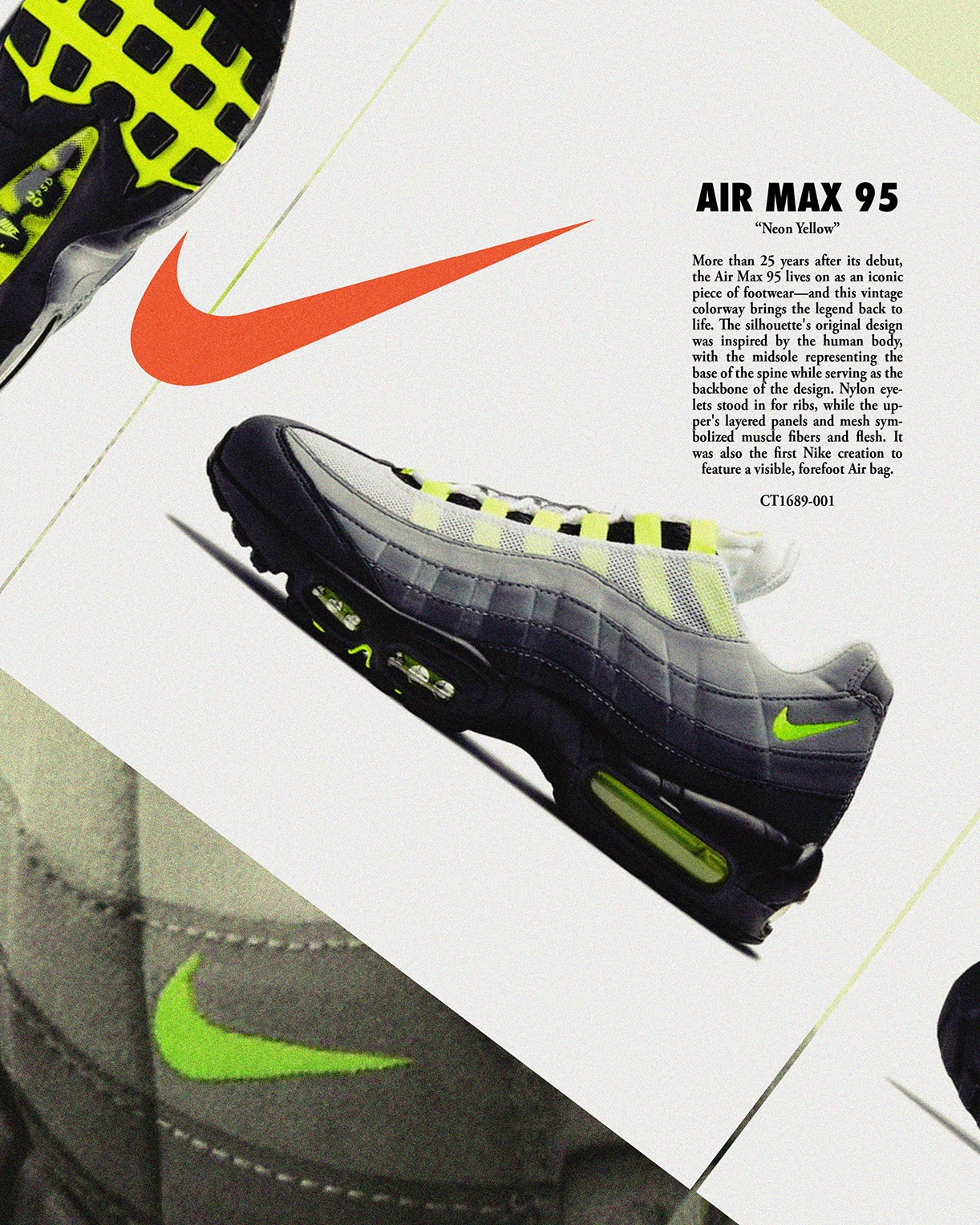 그리고 정확히 30년이 지난 2025년 지금, CW는 사실 거의 잊혀진 모델이 됐다. 반면 내가 선택하지 않았던 에어맥스 95는 스니커즈 역사에서 레전드 운동화고 됐고, 그중에서도 최초 발매했던 형광 옐로우 컬러는 여전히 많은 컬렉터들의 사랑을 받고 있는 레전드 오브 레전드 운동화가 됐다.