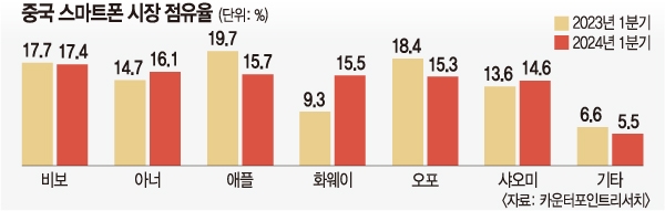 "애플, 2023년 1분기 중국 시장에서 아이폰 판매 부진 겪어 - 점유율 3위로 추락"