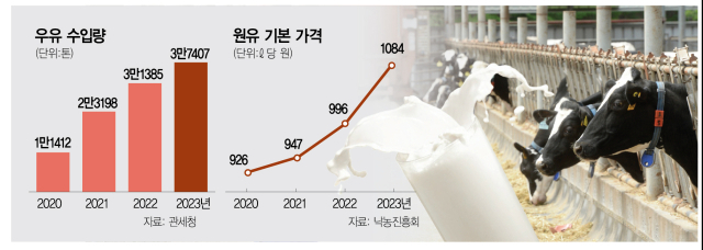 올해 우유 원유 가격 협상이 시작되면서 우유와 유제품 가격 상승, 이른바 '밀크플레이션'에 대한 우려가 커지고 있습니다. 원유 가격이 인상될 경우 유제품 가격이 도미노 인상될 가능성이 큽니다. 현재 원유 가격은 ℓ당 1084원으로, 협상 이후 최대 ℓ당 1110원이 될 수 있습니다.