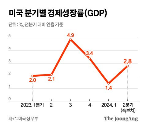 "미국 2분기 GDP 2.8% 상승, 시장 예상치 상회: 금리 인하 가능성 여전"