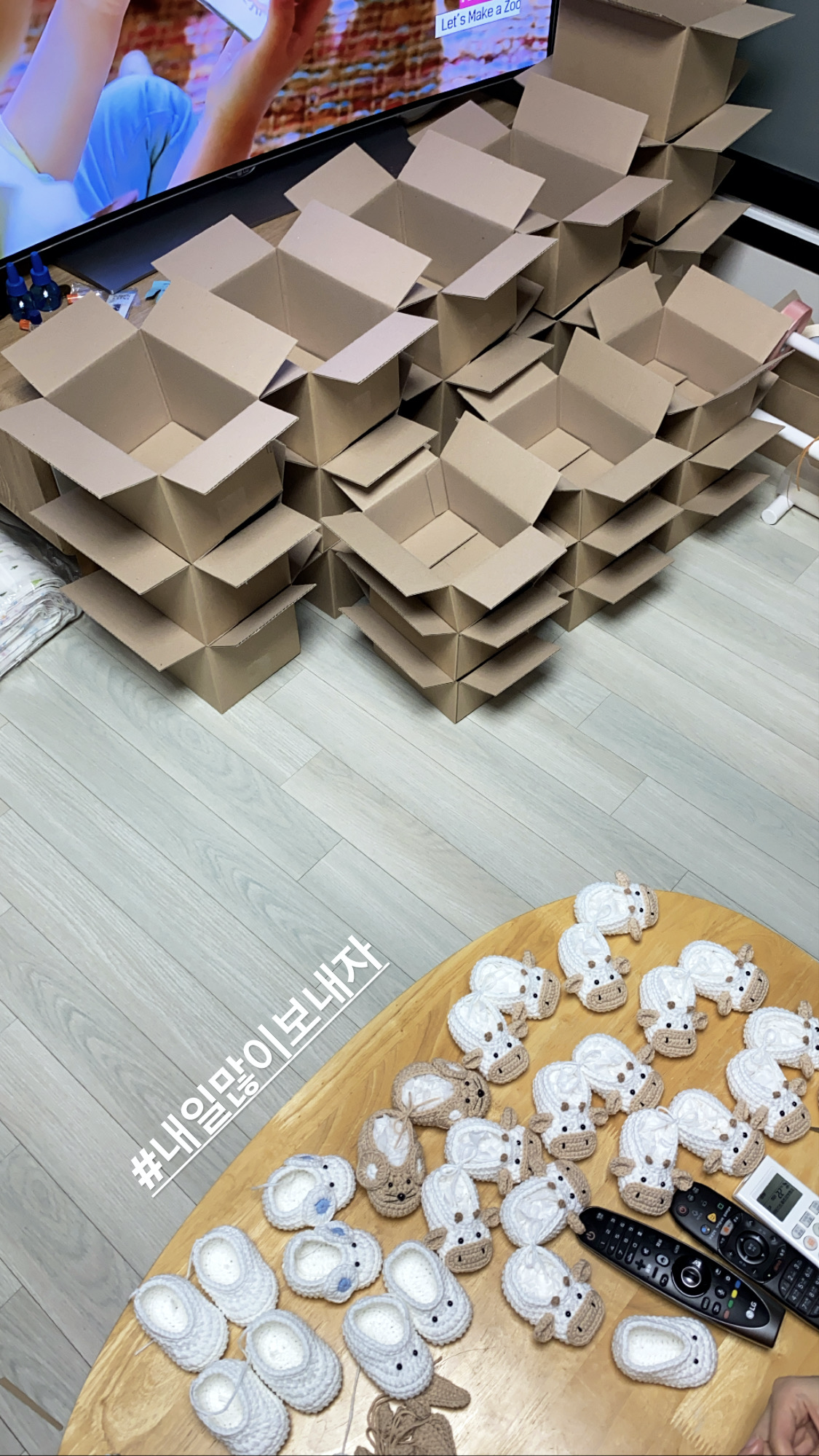 그래서 이번 연휴동안 핸드메이드 신생아용 신발을 무려 저렇게나 만들고 포장을 했다.